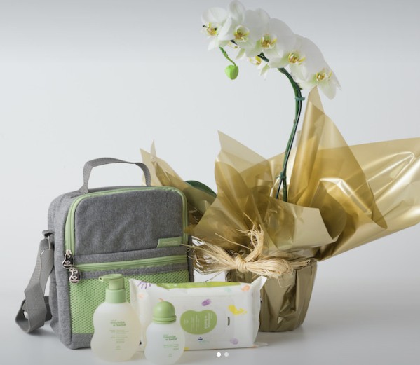 Se você deseja presentear com mais elegância, este conjunto de orquídea Phalaenopsis Branca de uma haste, plantada em um vaso e embrulhada especialmente para presente, acompanhada por Conjunto Natura Mamãe e Bebê.